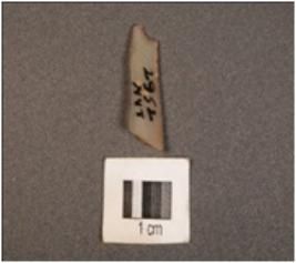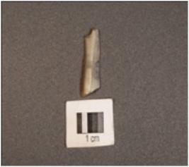| Description / विवरण | A chalcedony blade with two-ridges on dorsal surface, triangular section, use-wear marks along the cutting edges and distal end broken. |