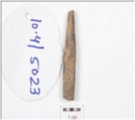 | Description / विवरण | A fragment of bone point, broken upper part and slightly missing working edge and irregular circular cross section. |
