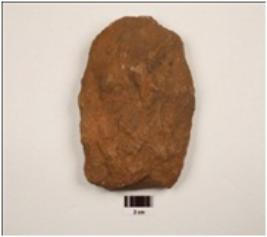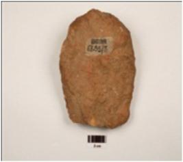 | Description / विवरण | A handaxe made on end struck quartzite flake, use-wear marks on cutting edge, partly broken from one end, plano-convex in section. |