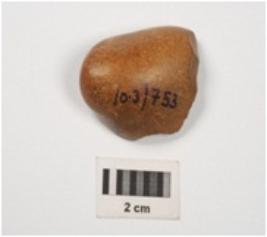 | Description / विवरण | An end scraper, made on chert with flake scars and ripple marks bulb is absent and retouches on working edge. |