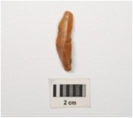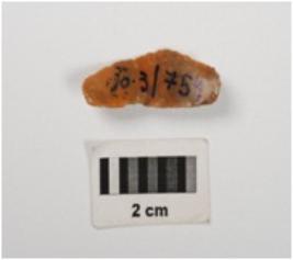 | Description / विवरण | A chert blade with two ridges and ripple marks on dorsal side, diffused bulb on ventral side and use wear marks on cutting edges. |