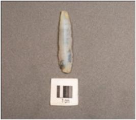| Description / विवरण | Pen knife shaped chalcedony blade, mid-ridge on dorsal, use-wear edges, defused end on proximal end. |