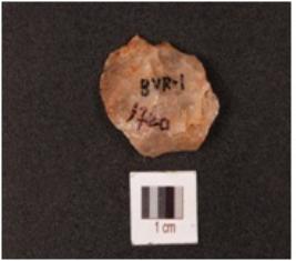 | Description / विवरण | A quartz stone scraper ridge on the dorsal ventral is rough with diffuse bulb and irregular retouch at edges. |