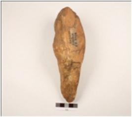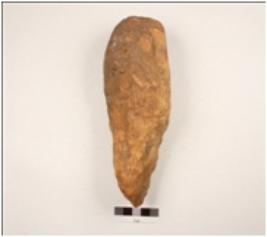 | Description / विवरण | A handaxe made on quartzite flake with use-wear marks on cutting edge, flake scars on one side, biconvex in section. |