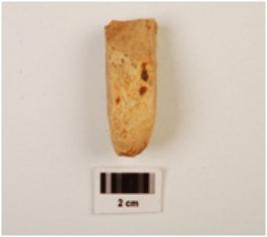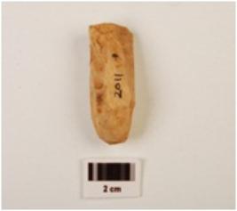 | Description / विवरण | Chert core with seven blade scars and few flaking on surface, striking platform visible. |