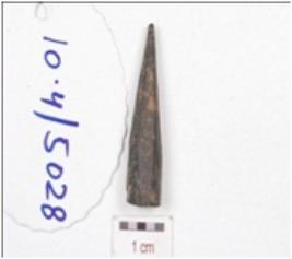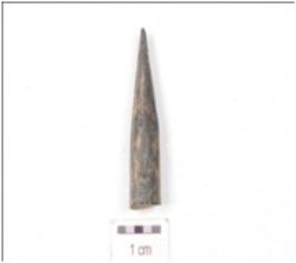 | Description / विवरण | A fragment of bone point, broken upper part, pointed working edge and circular cross section. |