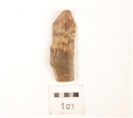 | Description / विवरण | Broken blade with prominent bulb on ventral side on proximal end, flake scars on surface, use wear marks on both working edge, trapezoidal cross section. |