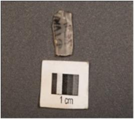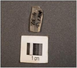 | Description / विवरण | A chalcedony blade with two-ridges on dorsal surface, trapezoidal section, use-wear marks along the cutting edges and distal end broken. |