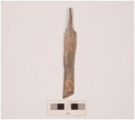 | Description / विवरण | Arrow head point stone tool, grooved lines on bottom, greyish in colour smooth surface. |