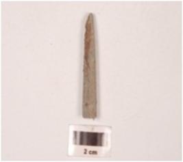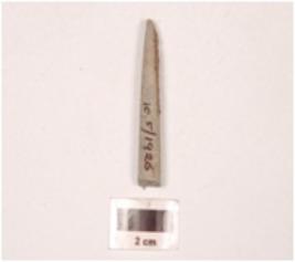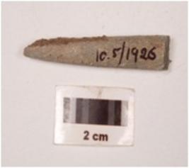 | Description / विवरण | Fragment of a point stone, slightly broken at one end, pointed at other end rectangular in section, greyish colour, smooth surface. |