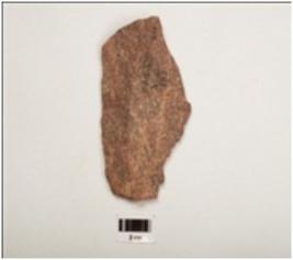 | Description / विवरण | A bifacial handaxe made an end struck quartzite flake prepared platform diffused bulb on ventral side, flake scars on dorsal side, thick buttend and other point is pointed and partly broken. |
