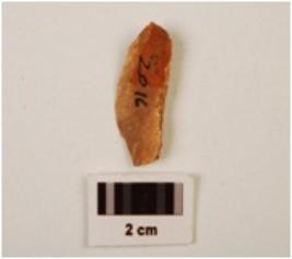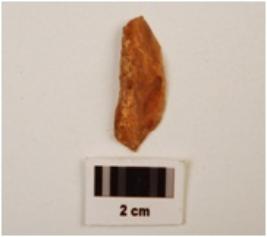| Description / विवरण | Scraper with convex working edge, end struck with diffused positive bulb on one end slight chippings visible one surface. |