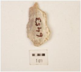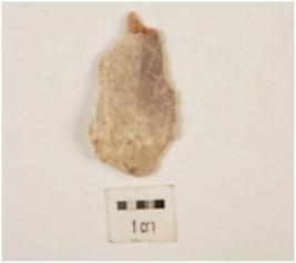 | Description / विवरण | Flake with a prominent bulb on one end with a striking platform, blunted edges. |