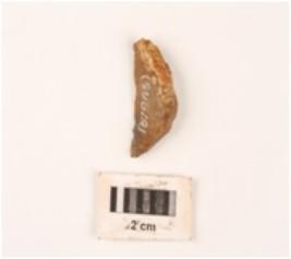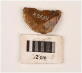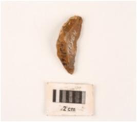 | Description / विवरण | Lunate with a lateral sharp cutting edge, cortex visible on surface. |