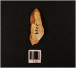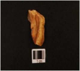 | Description / विवरण | Side scraper with a blunt working edge, cortex visible, slight chippings visible on surface. |