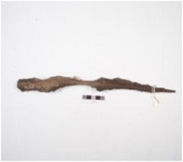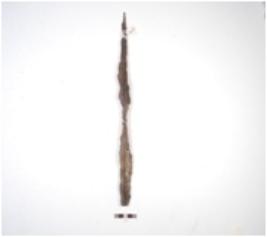 | Description / विवरण | An iron spear with a pointed tip and rusted surface, elongated shaped. |