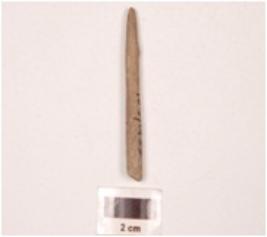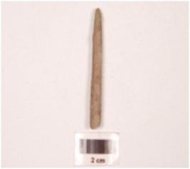 | Description / विवरण | Fragment of a point stone, slightly broken at one and pointed at other end, circular in section, greyish colour, smooth surface. |