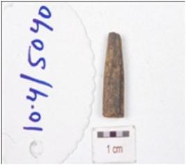 | Description / विवरण | A fragment of point made on bone, broken both ends and oval cross section. |