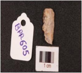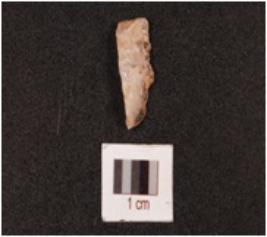 | Description / विवरण | A micro blade with a mid-ridge on the dorsal side, made on quartz, irregular along the cutting edges and broken at proximal end. |