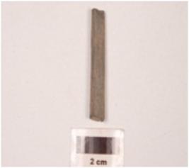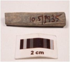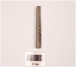 | Description / विवरण | Fragment of a point stone, plano-convex in section, slightly broken both end, greyish colour, smooth surface. |