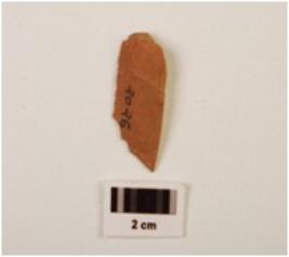 | Description / विवरण | Scraper with working edges on one side, retouches visible, two flakings on surfce, positive bulb visible on ventral side near the striking platform. |