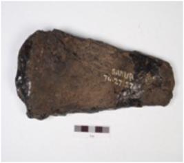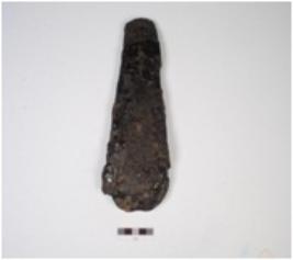 | Description / विवरण | An iron wedge with rusted surface, broad at one end white the other end is thin. |