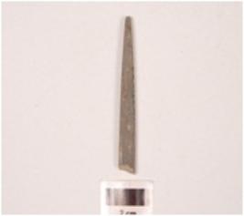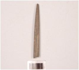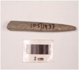 | Description / विवरण | Fragment of a point stone, slightly broken at one end and pointed broken at other end, rectangular in section, greyish colour, smooth surface. |
