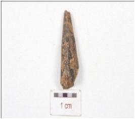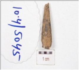 | Description / विवरण | A fragment of point made on bone, broken upper part and slightly missing working edge and irregular cross section. |