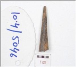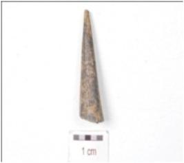 | Description / विवरण | A fragment of point made on bone, broken upper part and slightly missing working edge and circular cross section. |