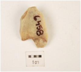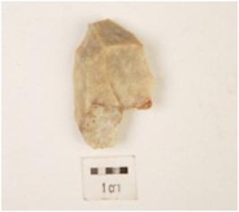 | Description / विवरण | Flake with striking platform on ventral side, positive bulb on proximal end with diffused bulb on ventral side, flake scars on surface visible, slightly broken. |