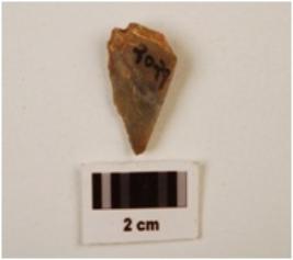 | Description / विवरण | End struck side scraper, working edge on side, slight chippings found on surface, one side broken. |