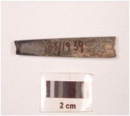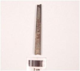 | Description / विवरण | Fragment of a point stone, slightly broken both end, rectangular in section, greyish colour smooth surface. |
