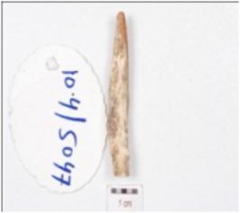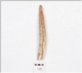 | Description / विवरण | A fragment of point made on bone, broken upper part and slightly missing working edge and irregular cross section. |