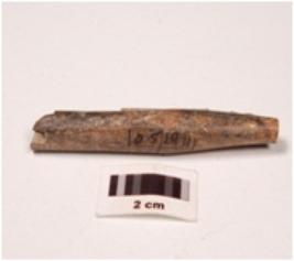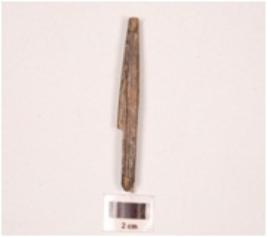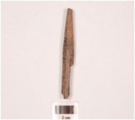 | Description / विवरण | Fragment of a point stone, circular in section, slightly broken both end, greyish colour, smooth surface. |