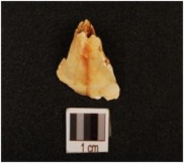 | Description / विवरण | Side scraper, with a working edge on side with retouches, positive bulb on one side. |