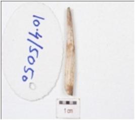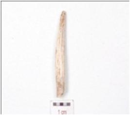 | Description / विवरण | A fragment of point made on bone, broken upper part, pointed working edge and irregular cross section. |
