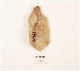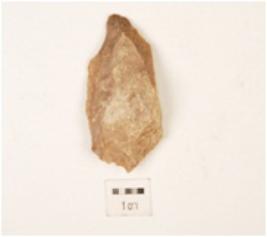 | Description / विवरण | Flake with a striking platform on one end with a prominent bulb on ventral side end, flake scars on surface. |