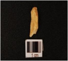 | Description / विवरण | Scraper with a sharp working edge, convex on other side, slight chipping on surface. |