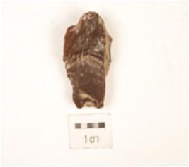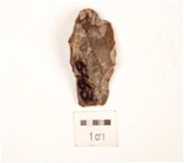 | Description / विवरण | Flake with prominent flake scars on surface, striking platform and bulb are broken, ripple marks visible on one side, rectangular cross section. |