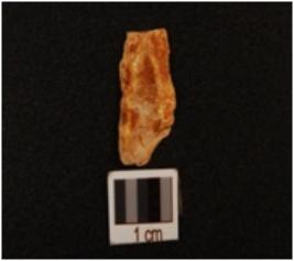 | Description / विवरण | Blade with two working edges, blade scars on dorsal side, striking platform on proximal end near the positive bulb on ventral side, broken at distal end. |