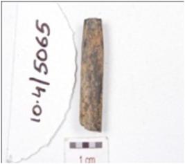 | Description / विवरण | A fragment of point made on bone, both ends are broken and rectangular cross section. |