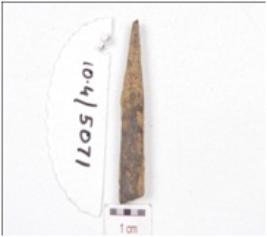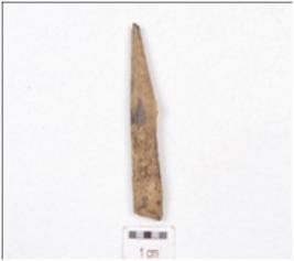 | Description / विवरण | A fragment of point made on bone, upper part is broken, working end is slightly chipped off and rectangular cross section. |