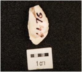 | Description / विवरण | Flake with a striking platform and prominent bulb on one end, use wear marks found on edges, triangular cross section. |