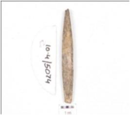 | Description / विवरण | A bone point, one end is broken, working end is slightly chipped off and rectangular cross section. |
