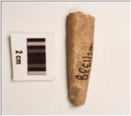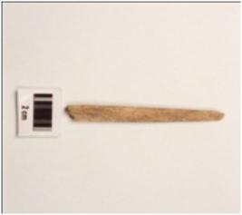 | Description / विवरण | A bone point fragment with smooth surface, partly broken from pointed end, rectangular in section. |