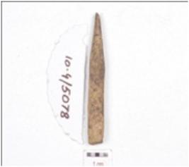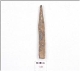 | Description / विवरण | A fragment of point made on bone, working end is slightly chipped off and rectangular cross section. |