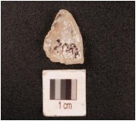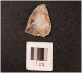 | Description / विवरण | A quartz end struck flake with use-wear marks along the edge. |