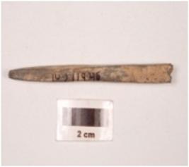 | Description / विवरण | Fragment of a point stone, greyish colour, rectangular in section, smooth surface, slightly broken both end. |