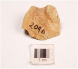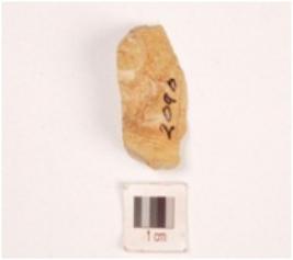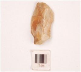 | Description / विवरण | A chert end struck flake, prepared platform and prominent bulb on ventral side. |