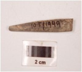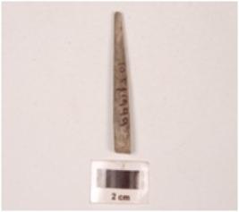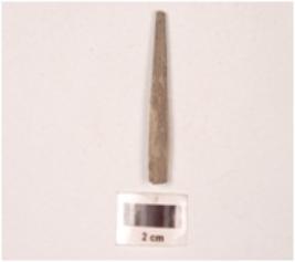 | Description / विवरण | Fragment of a point stone, circular in section, slightly broken both end, greyish colour, smooth surface. |